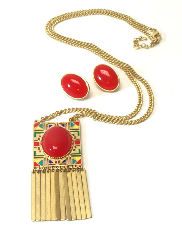 WHOLESALE BIG STONE EYE TRIBAL PATTERN METAL BAR DROP LONG NECKLACE EARRING SET 402850