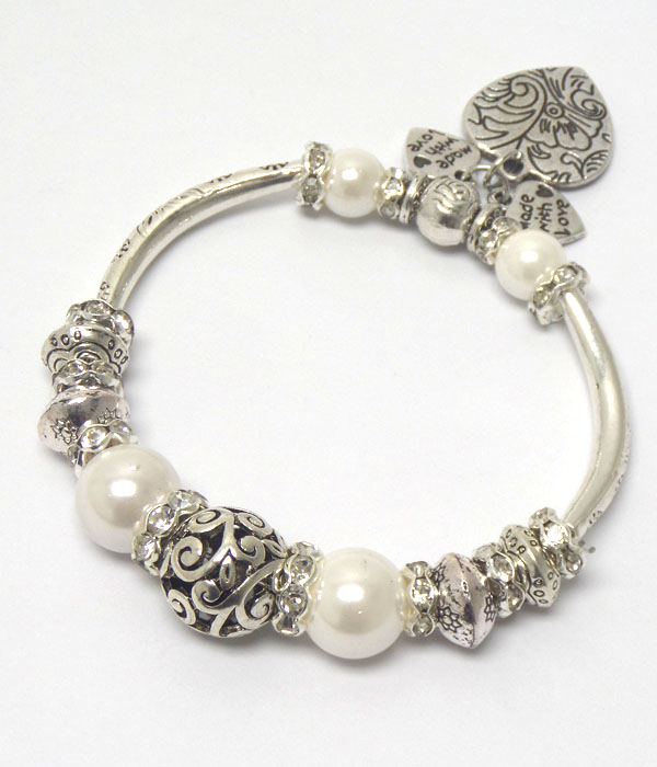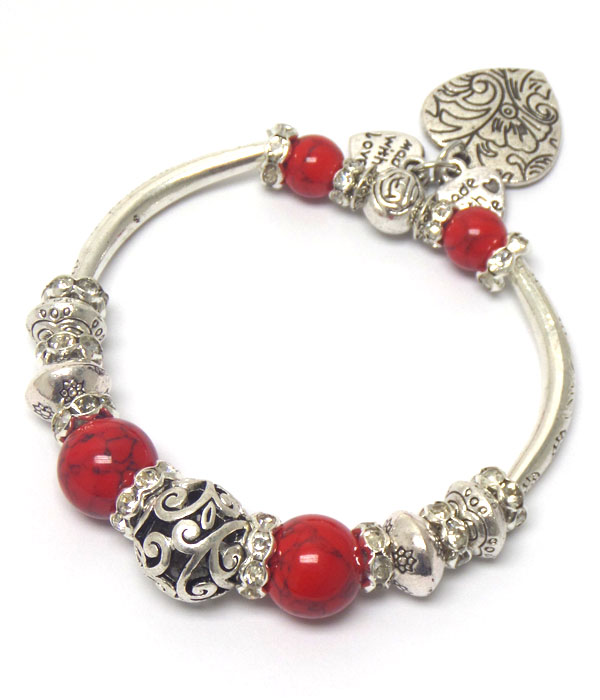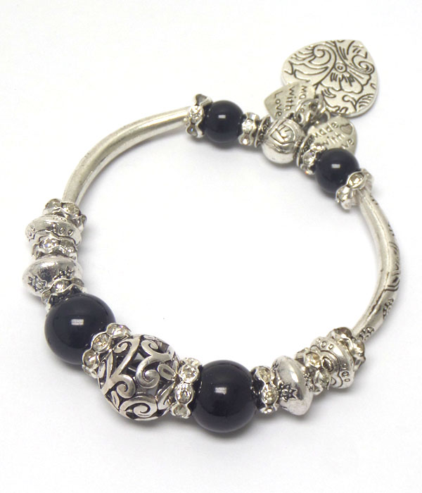 Crystal rondelle and metal filigree balll mix pandora style stretch bracelet