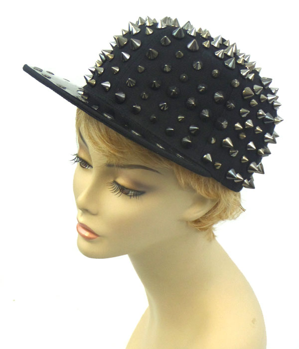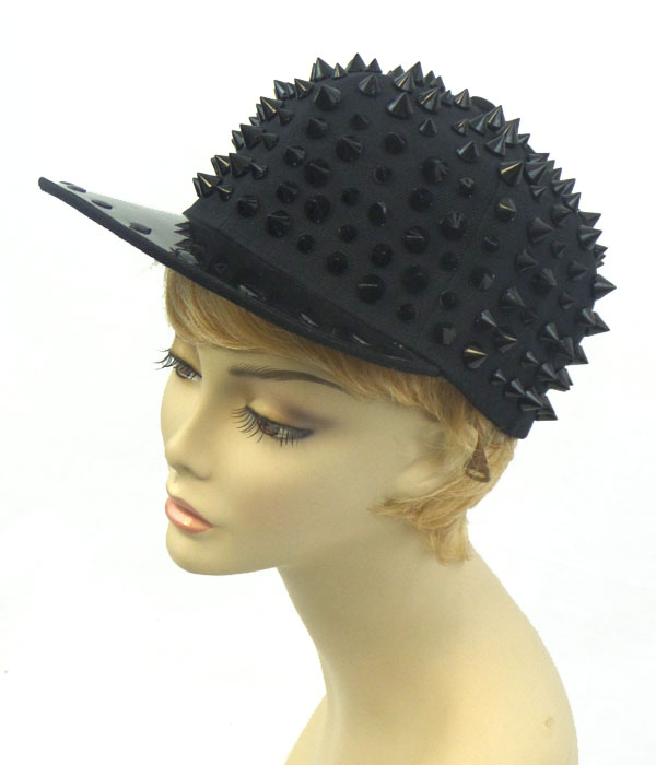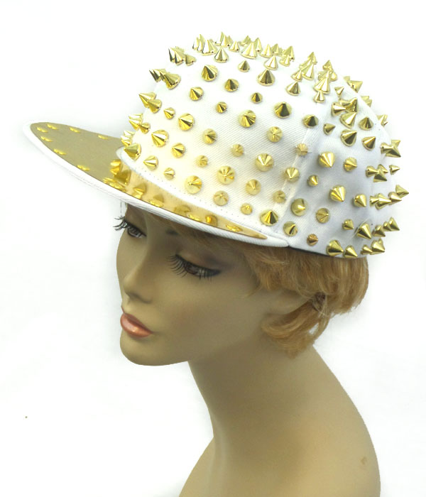 WHOLESALE SPIKE ALL OVER AND SILVER TONE BRIM PUNK HIPHOP CAP 403297