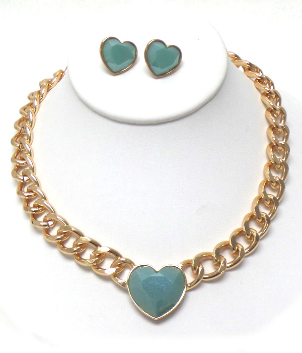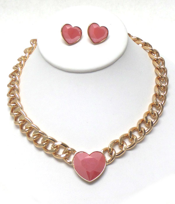 Acrylic heart and thick chain necklace earring set -valentine