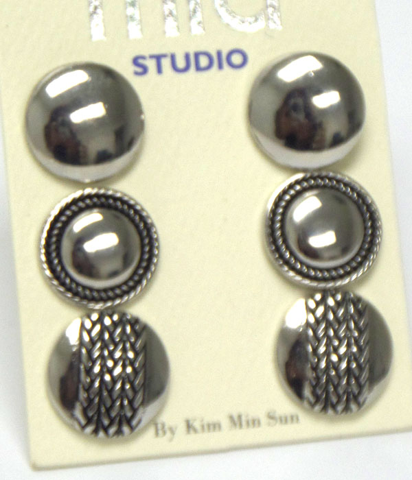 WHOLESALE PLAIN AND TEXTURED BUTTON EARRING SET OF 3 403432