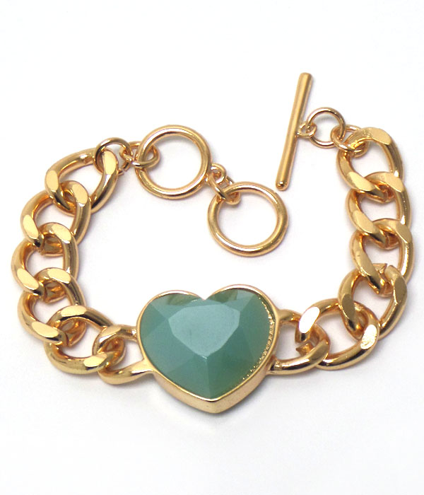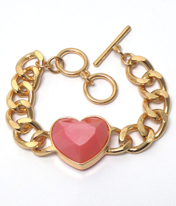 WHOLESALE FACET HEART STONE AND THICK CHAIN TOGGLE BRACELET -VALENTINE 403522