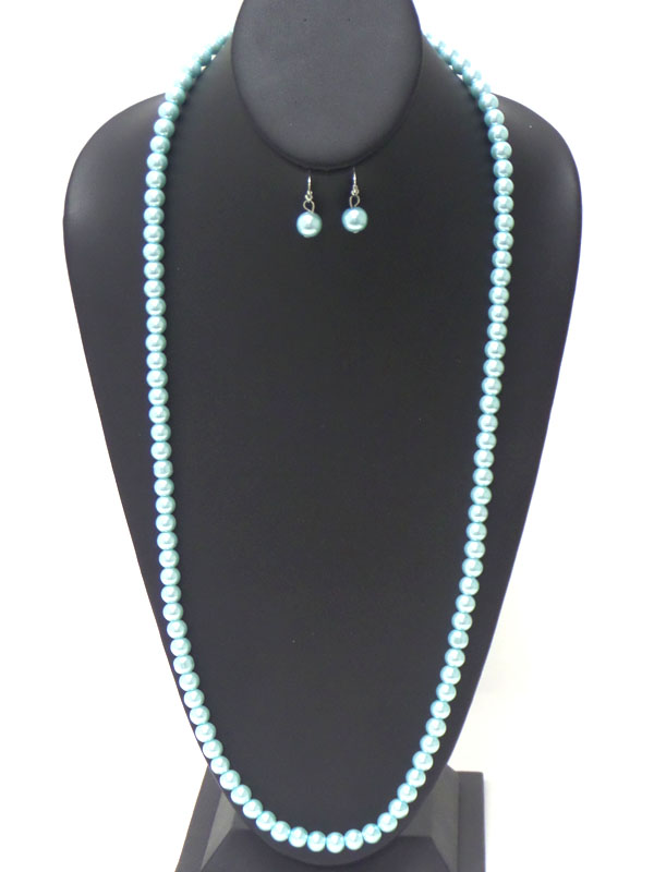 WHOLESALE LONG PEARL NECKLACE EARRING SET 403573