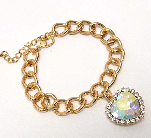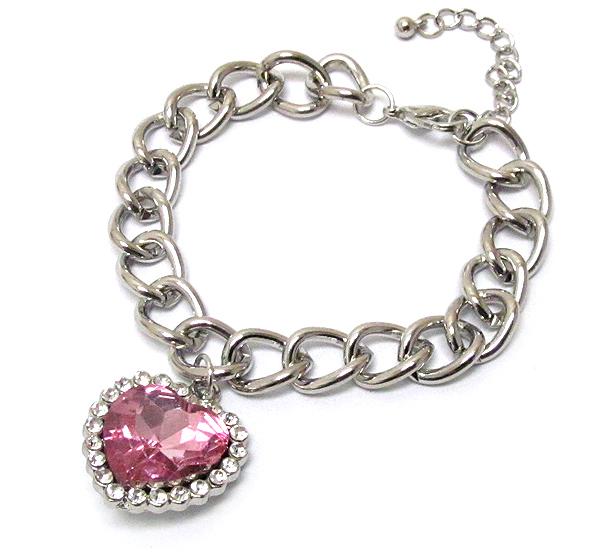 Crystal and facet heart charm chain bracelet -valentine