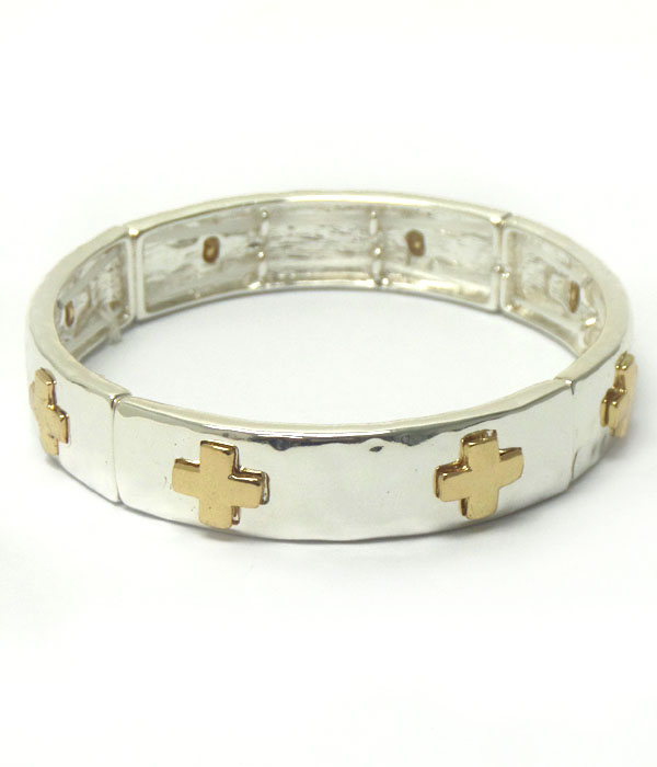 Plain metal cross stretch bracelet