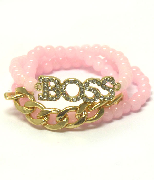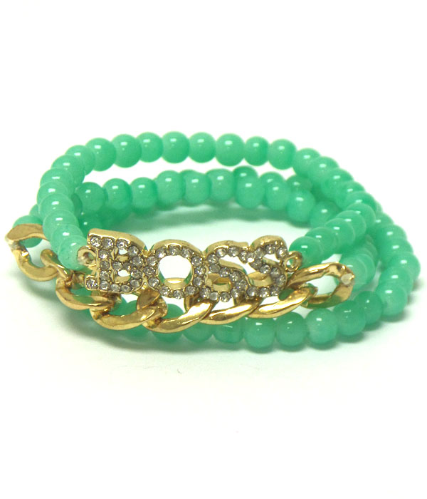 WHOLESALE CRYSTAL BOSS AND THICK CHAIN ACCENT STRETCH BRACELET SET OF 3 403807