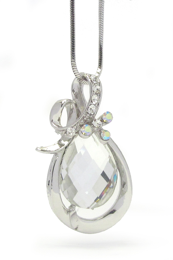 WHOLESALE MADE IN KOREA WHITEGOLD PLATING CRYSTAL AND FACET TEARDROP STONE CENTER PENDANT NECKLACE 403813