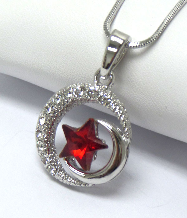 Made in korea whitegold plating crystal and facet star stone center moon pendant necklace