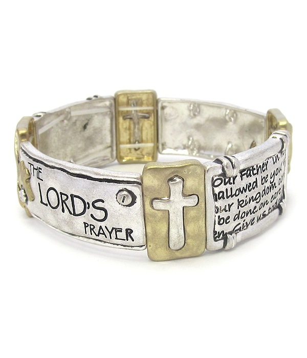 WHOLESALE RELIGIOUS INSPIRATION PATINA LORDS PRAYER MESSAGE STRETCH BRACELET 403838
