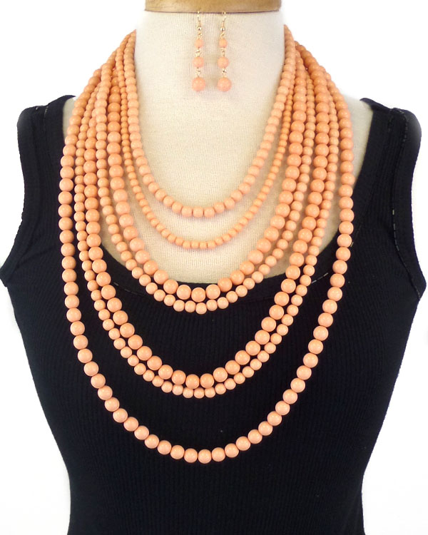 WHOLESALE SEVEN LAYER BEAD NECKLACE EARRING SET 404300