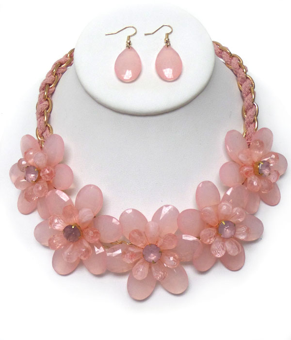 WHOLESALE MEDIUM FLOWER ROPE AND CHAIN NECKLACE SET 404306
