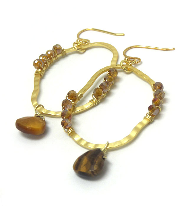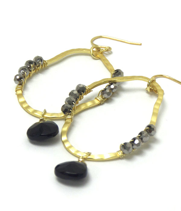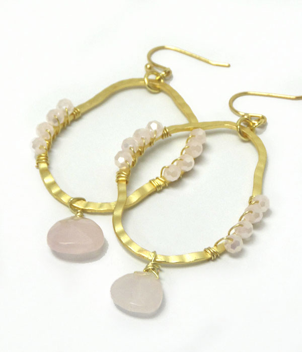 WHOLESALE GENUINE SEMI PRECIOUS STONE HOOP METAL EARRINGS - TURQUOISE 404858