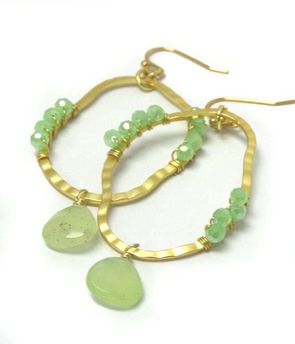 Genuine semi precious stone hoop metal earrings - turquoise