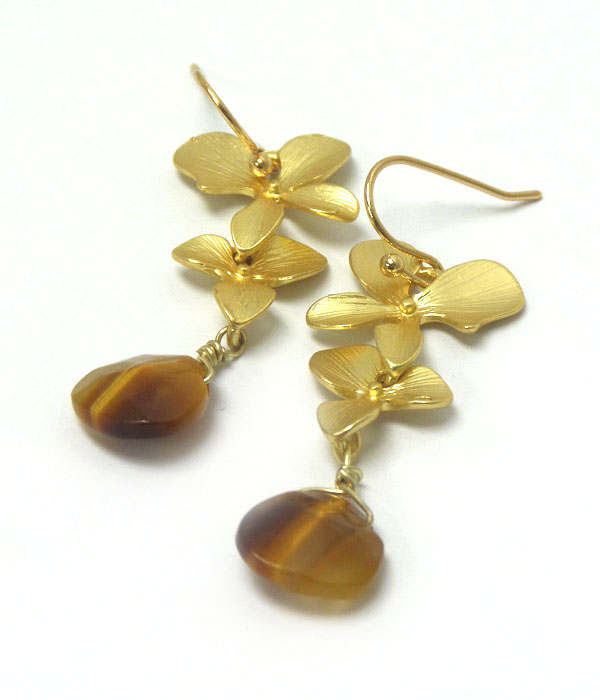 WHOLESALE GENUINE SEMI PRECIOUS STONE METAL FLOWER DROP EARRINGS - JET 404859