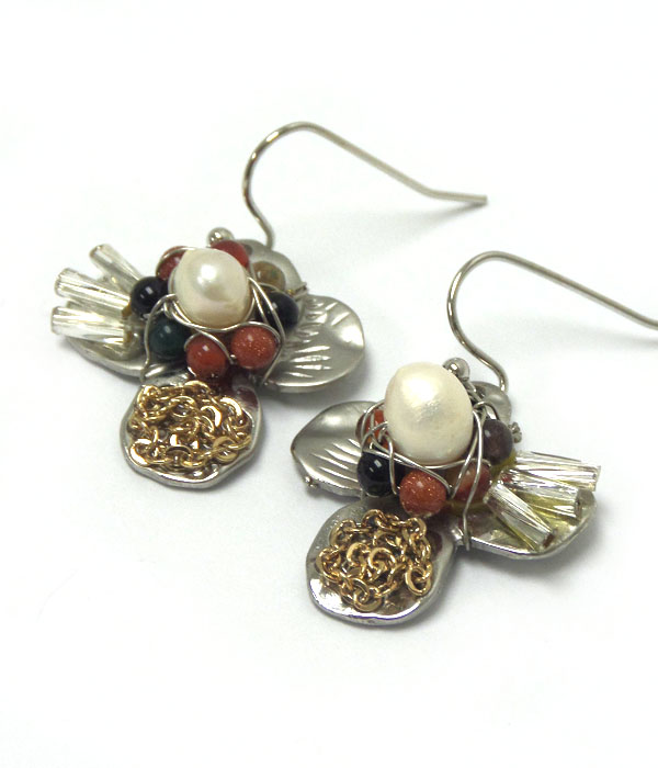 WHOLESALE GENUINE SEMI PRECIOUS STONE METAL EARRINGS - PEARL 404863