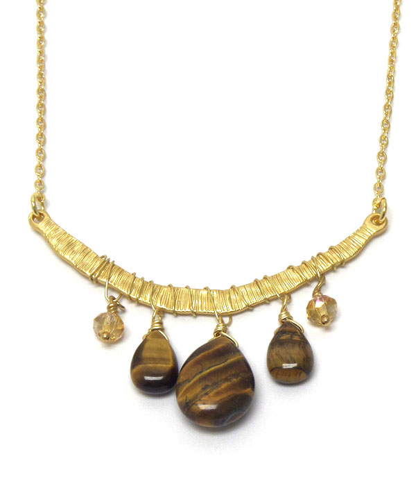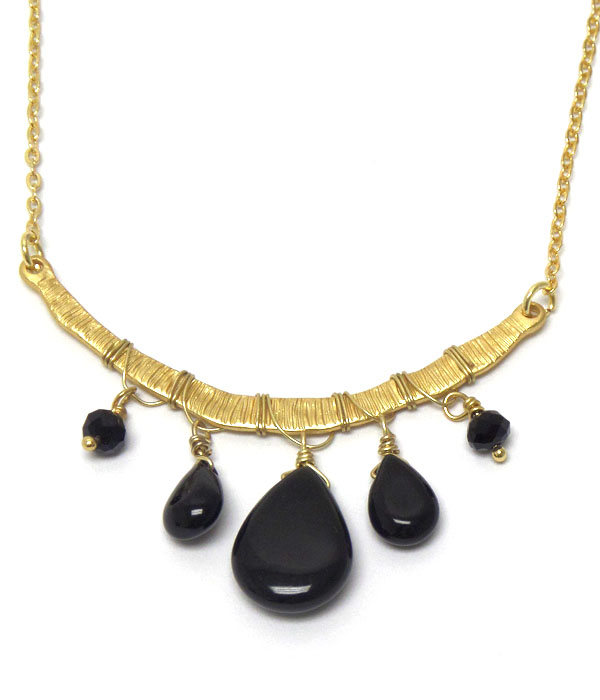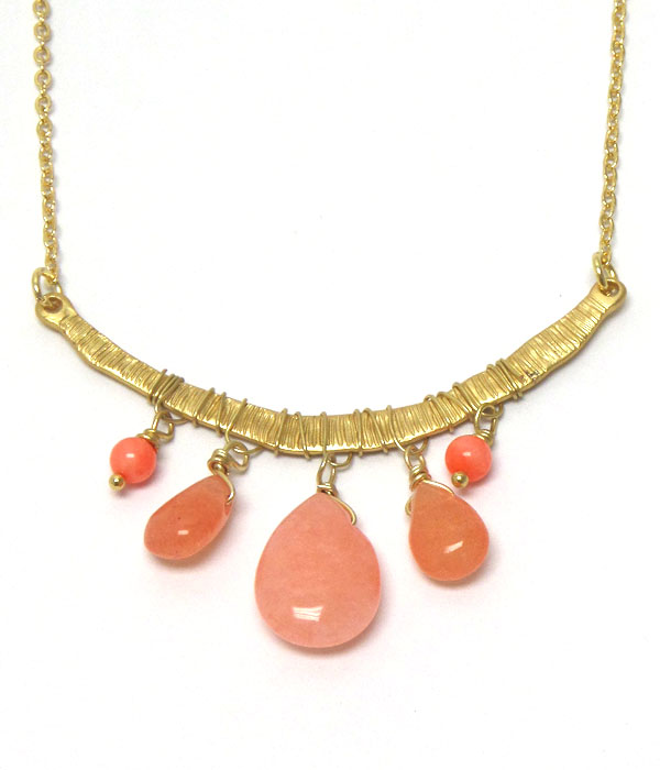 WHOLESALE GENUINE SEMI PRECIOUS STONE THIN METAL FIVE STONE NECKLACE - ROSE QUARTZ 404873