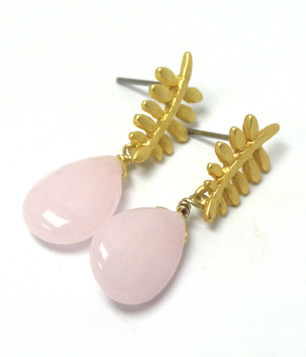 WHOLESALE GENUINE SEMI PRECIOUS STONE METAL LEAF EARRING - OPAL GREEN 405101