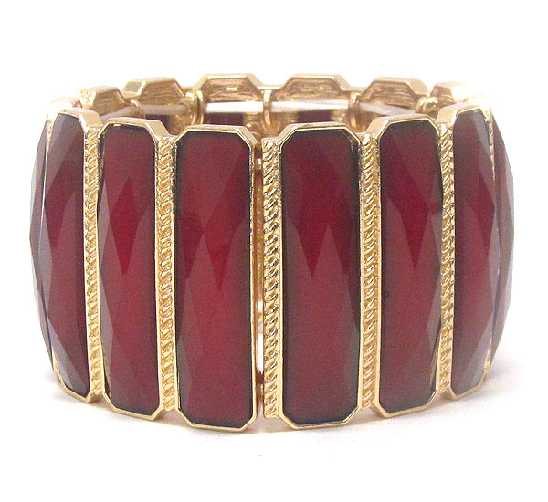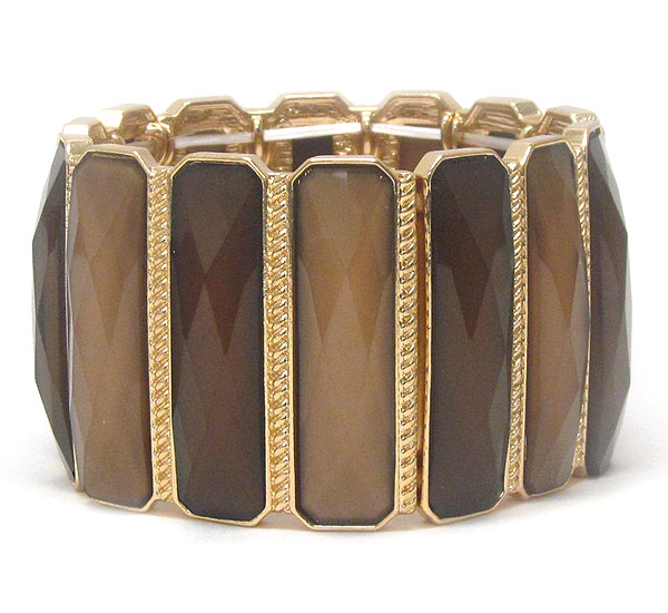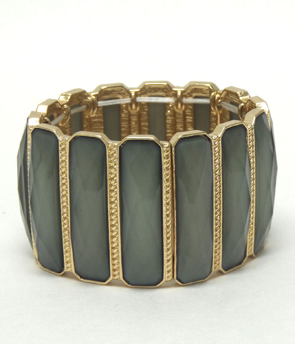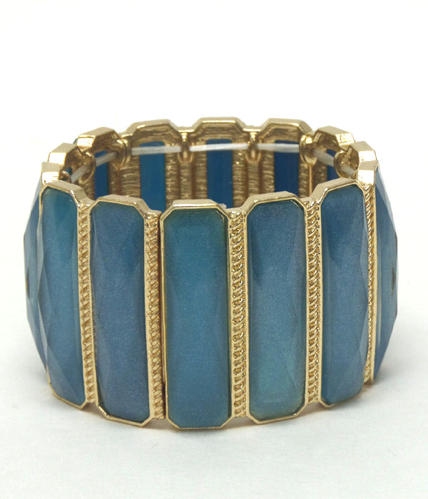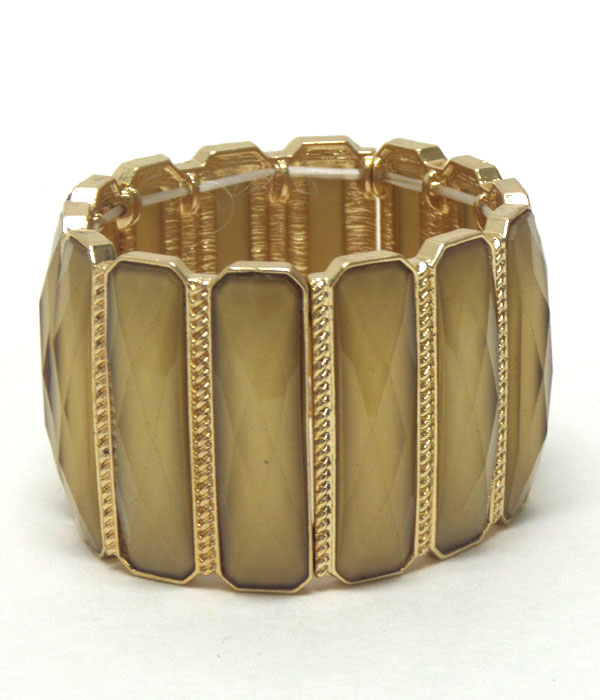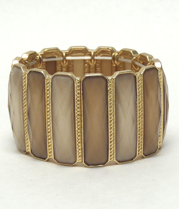 WHOLESALE TEXTURED METAL MULTI RECTANGLE PATTERN GLASS STONE STRETCH BRACELET 405316