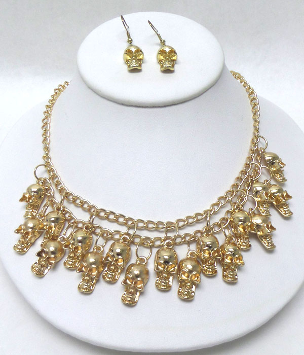 WHOLESALE DOUBLE LAYER METAL SKULL NECKLACE SET 405355