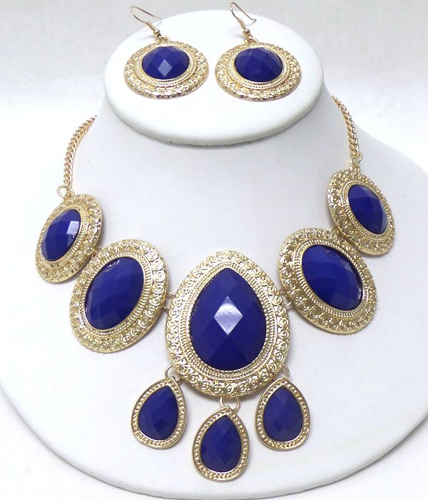 WHOLESALE TEARDROP WITH TEXTURED METAL BORDERS NECKLACE SET 405374