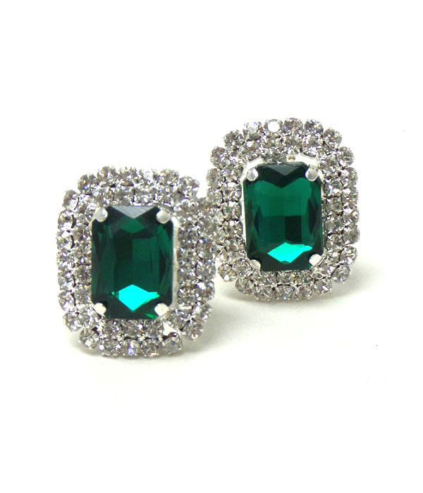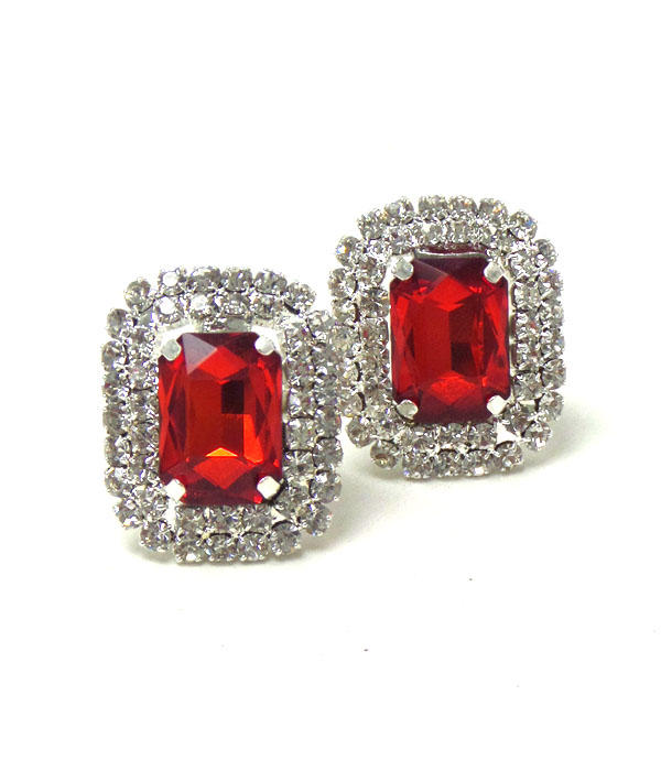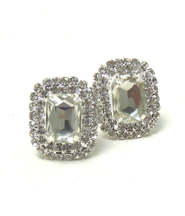 WHOLESALE MULTI CRYSTAL AND GLASS DECO RECTANGLE CLIP ON EARRING 405396