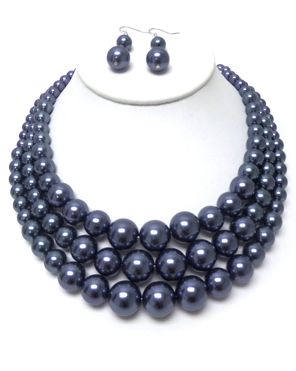 WHOLESALE 3 LAYERED PEARL CHAIN NECKLACE EARRING SET 405406