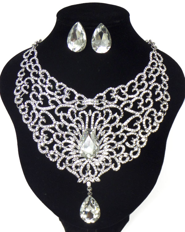 WHOLESALE LUXURY CLASS VICTORIAN STYLE AND AUSTRIAN CRYSTALTEARDROP FACET GLASS PARTY NECKLACE SET 405501