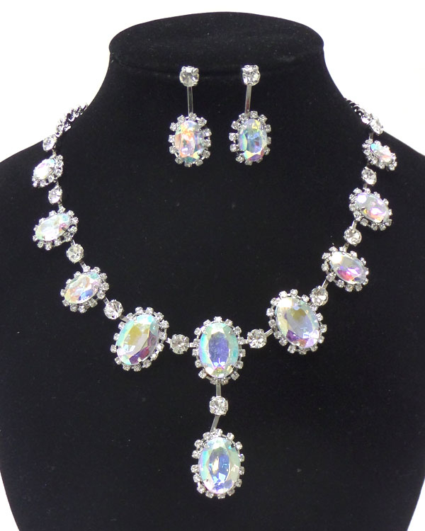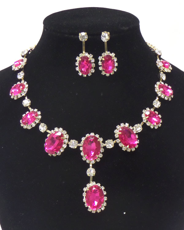 Linked circles with rhinestones and stones necklace set