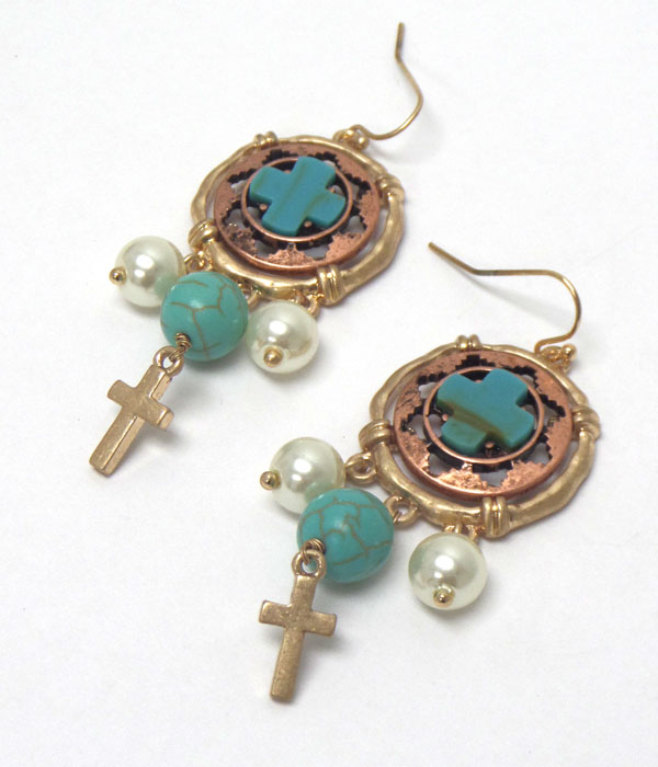 WHOLESALE ROUND HOOK CROSS EARRINGS 405609