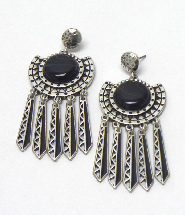Tribal style with stone burn silver earrings