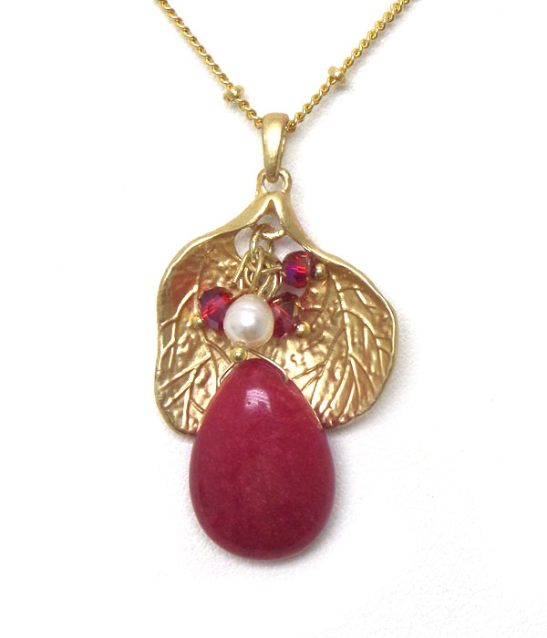 WHOLESALE GENUINE SEMI PRECIOUS STONE LEAF AND STONE NECKLACE - JET 405712