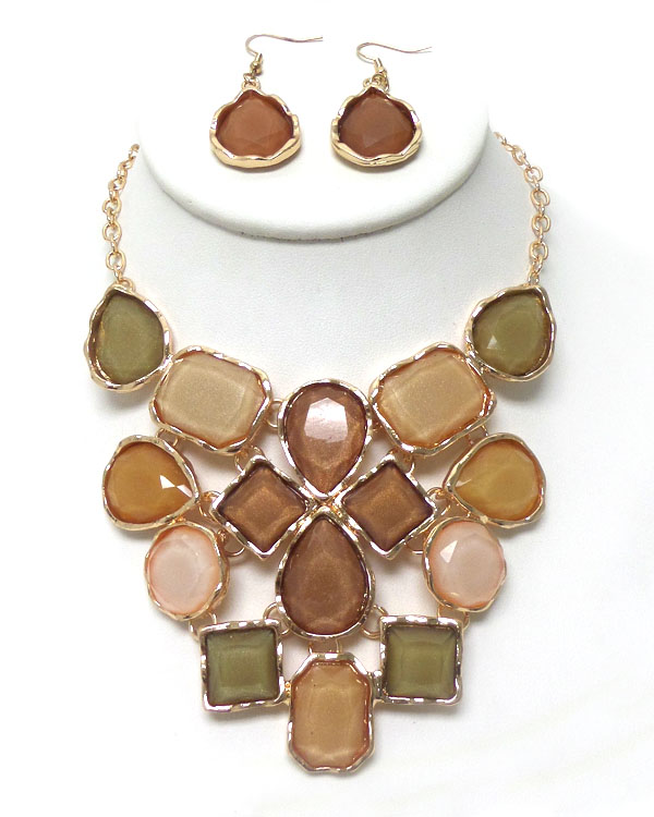 WHOLESALE MUTLI SHAPE RESIN STONE WITH CASTING NECKLACE SET 405804