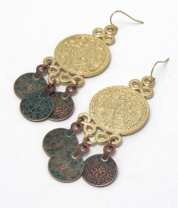 Antique thin metal burnish silver disks earrings