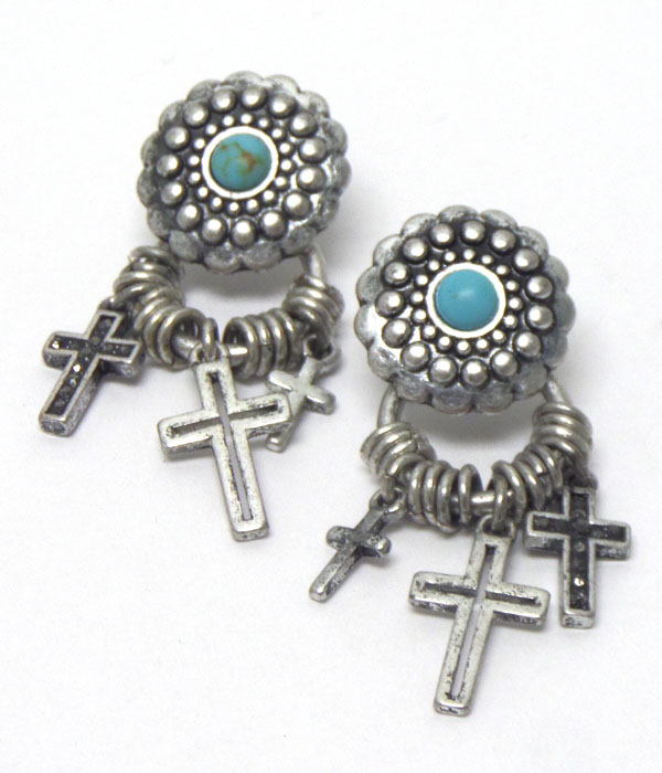 WHOLESALE TEXTURE METAL CHARM CROSS EARRINGS 406003