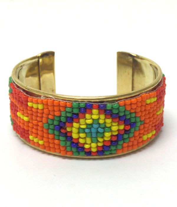WHOLESALE MULTI SEED BEADS BOHEMIAN PATTERN BANGLE BRACELET - BRASS 406266