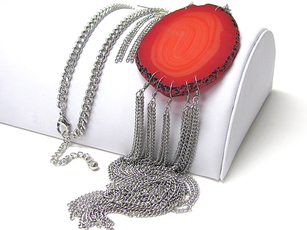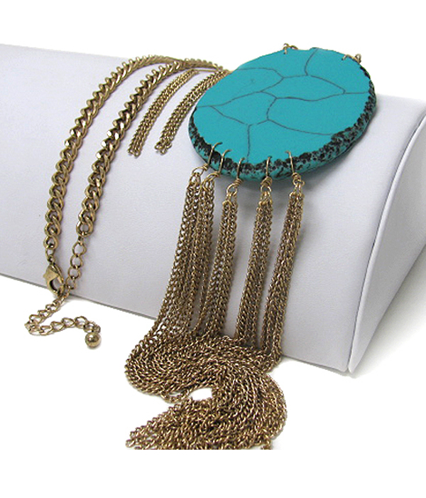 Natural stone and long metal tassel drop necklace set