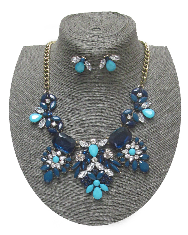 Multi flower bib statement necklace set