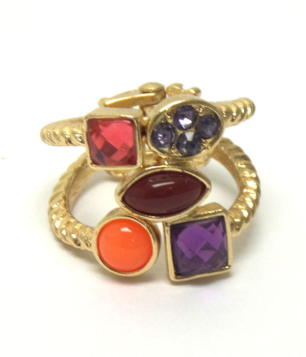 WHOLESALE MULTI STONE TWIST METAL TEXTURE HINGE RING 406644