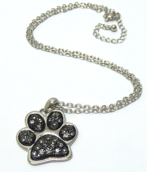 Paw print with rhinestones necklace
