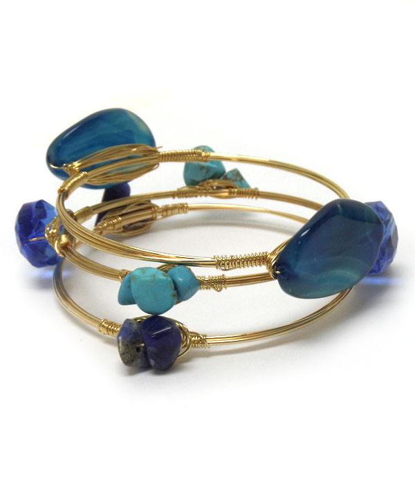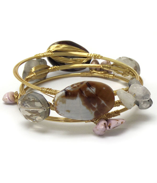 WHOLESALE QUARTZ AND GLASS STONE MIX HANDMADE BOURBON WIRE WRAPPED BANGLE BRACELET SET OF THREE 406934