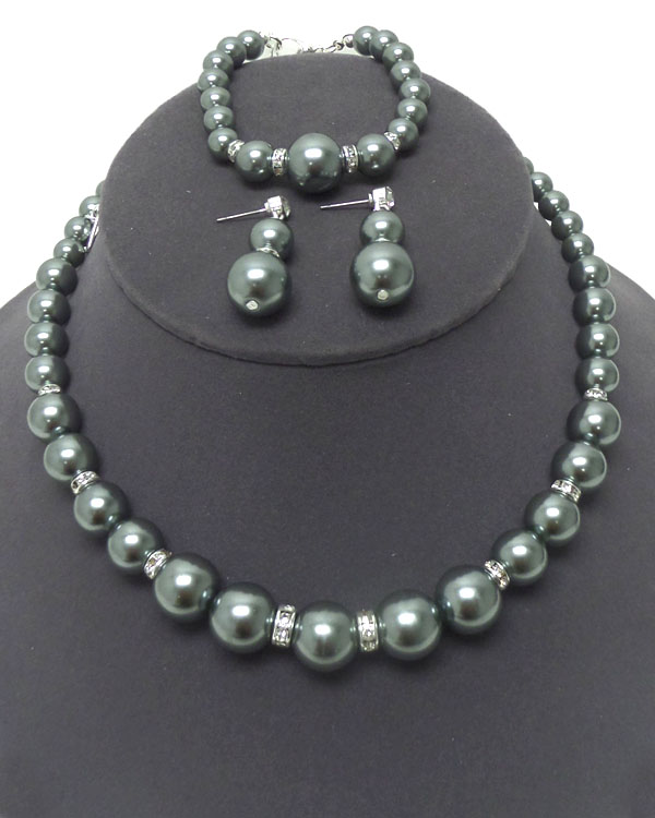 WHOLESALE PEARL WITH CRYSTALS NECKLACE AND BRACELET SET 407028