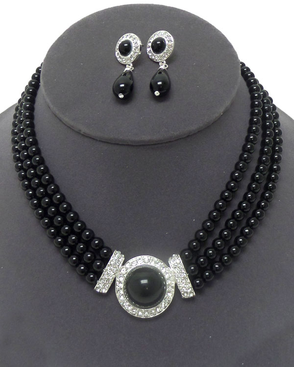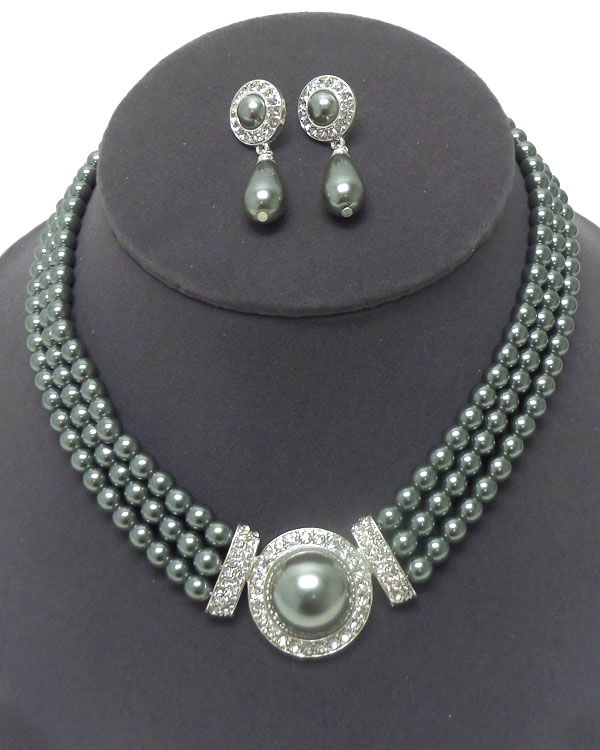 WHOLESALE THREE LAYER PEARL WITH CRYSTALS NECKLACE SET 407029