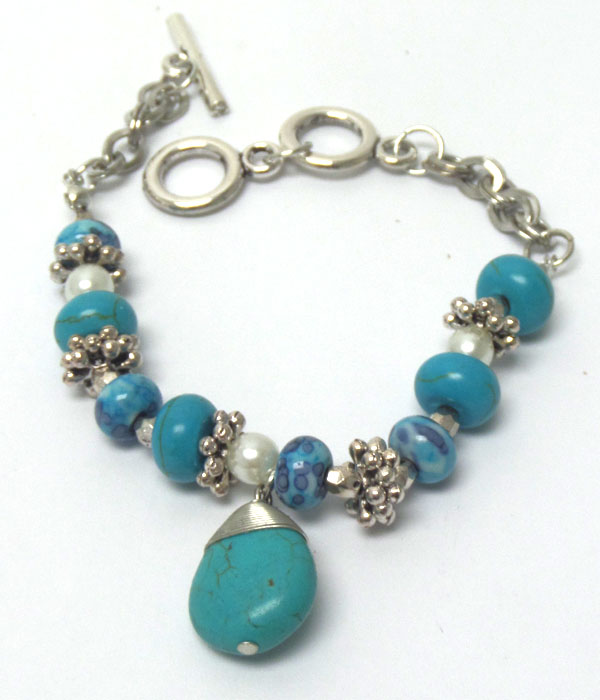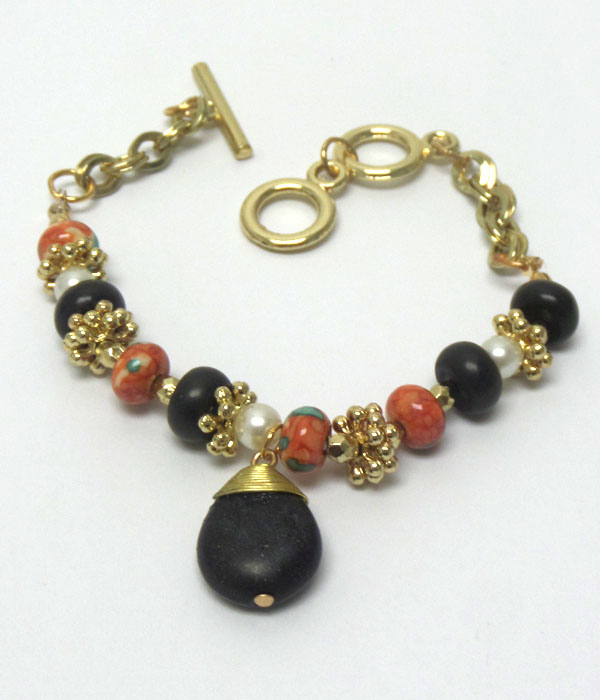 WHOLESALE STONE AND BEADS DANGLING TOGGLE BRACELET 407198