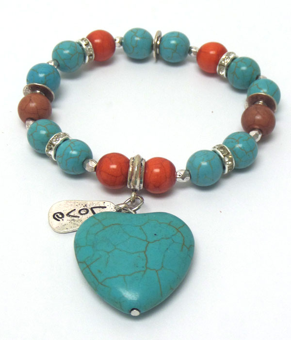 WHOLESALE TURQUOISE STONE HEART BRACELET 407308