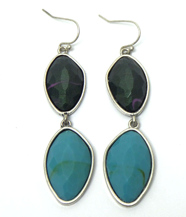 Two stones linked hook earrings