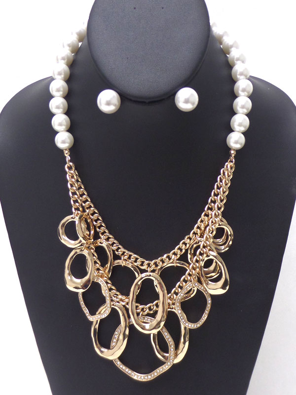 WHOLESALE PEARLS WITH CHAIN DISKS LINKED NECKLACE SET 407387