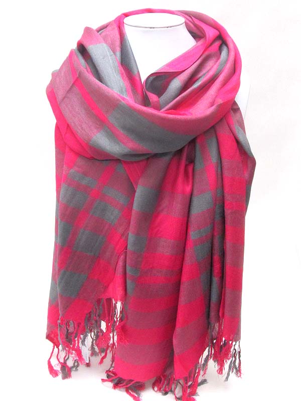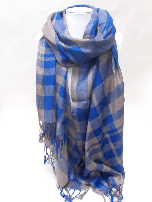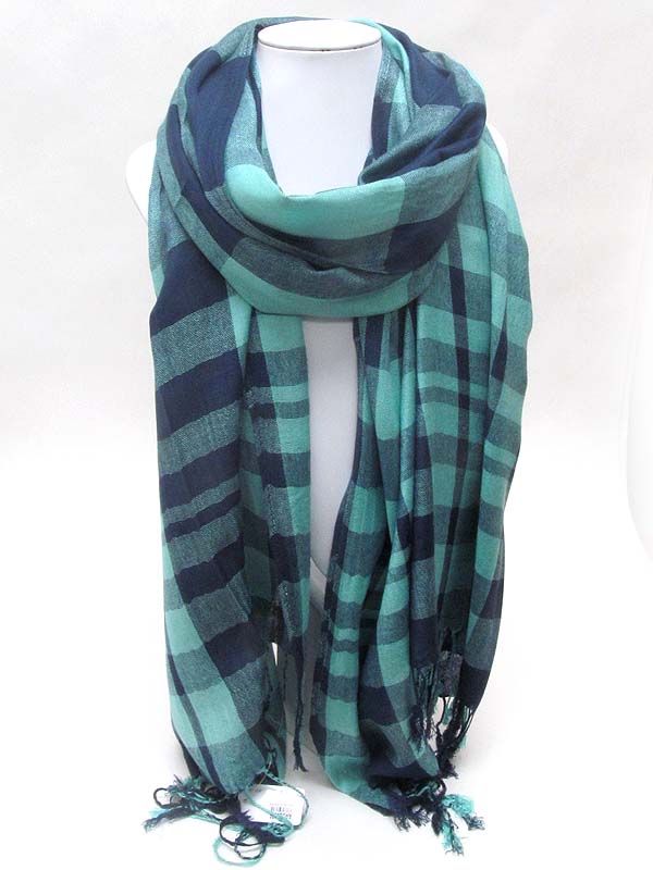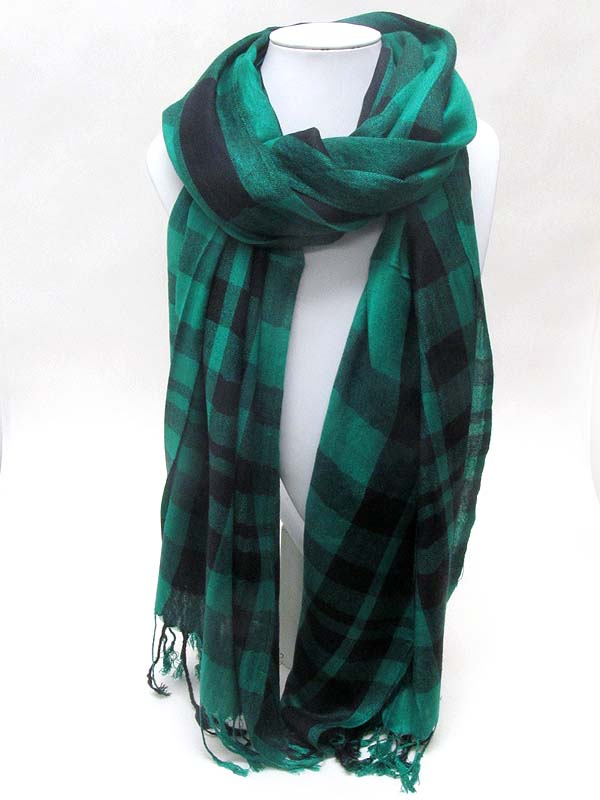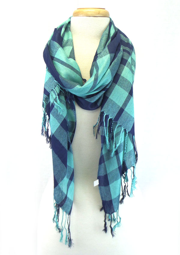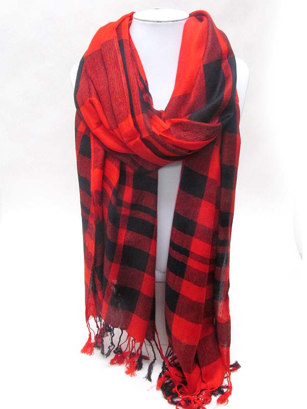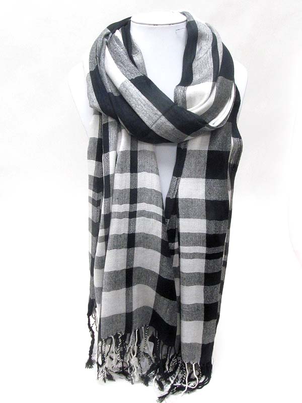 WHOLESALE CHECKERS PRINT WITH FRINGE DROP SCARF 407573