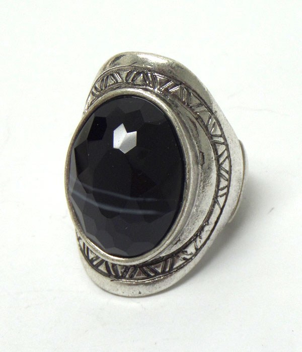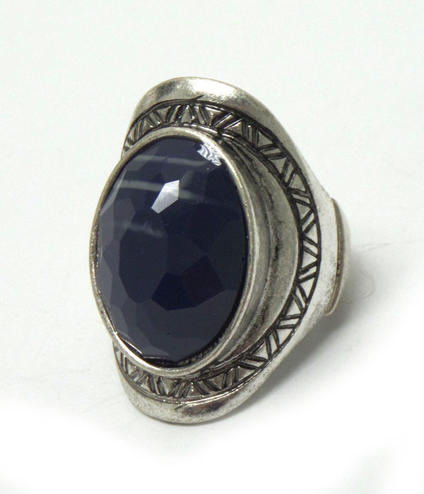 WHOLESALE BURN SILVER WITH BORDER AND STONE CENTER RING 407693