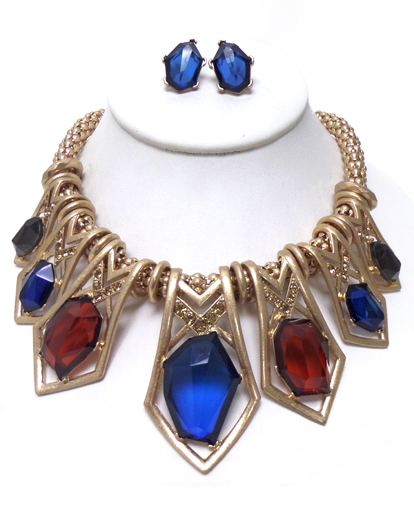WHOLESALE TEXTURED METAL WITH STONE NECKLACE SET 407817