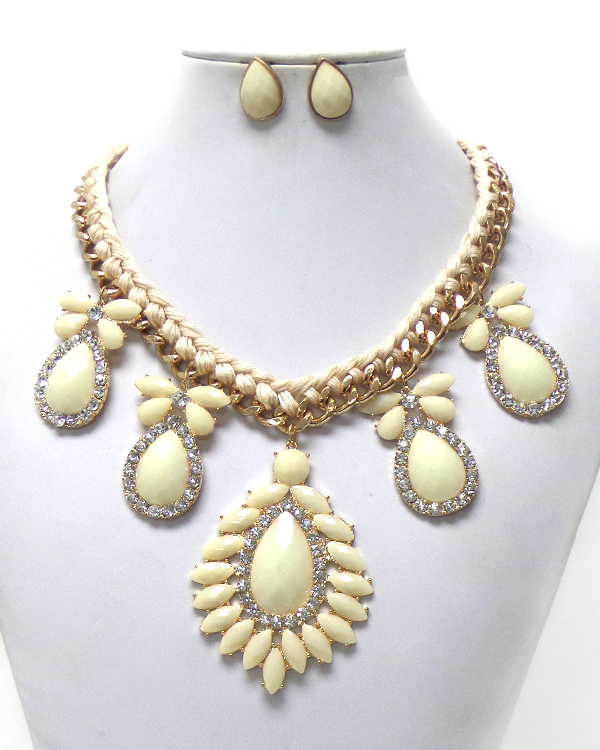 Braided yarn and chain stones necklace set